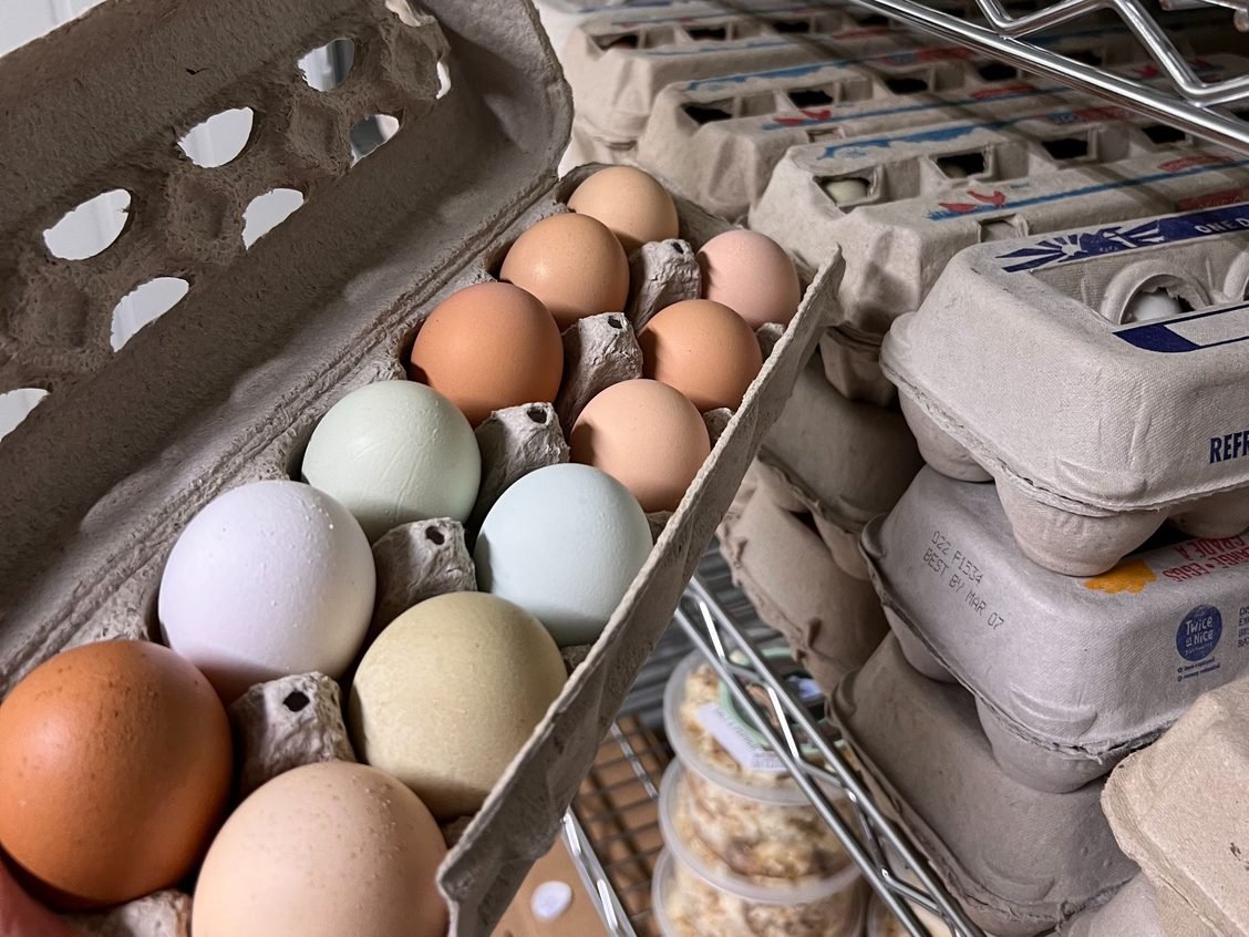 We provide the red insulated bags free of charge as long as members continue to return them. Not too many went missing in 2022, thank you! If you have some at home or in your car, please return them. We also welcome any reusable cardboard egg cartons (from Anavery or elsewhere) – that helps us keep our egg prices down.